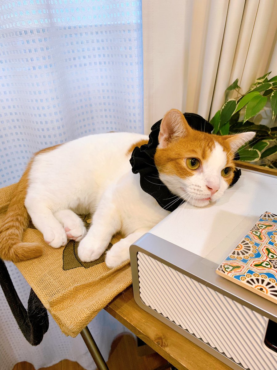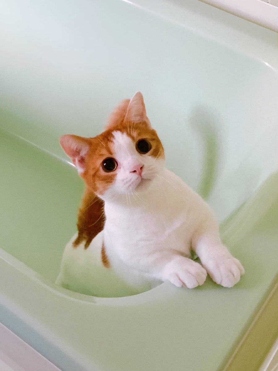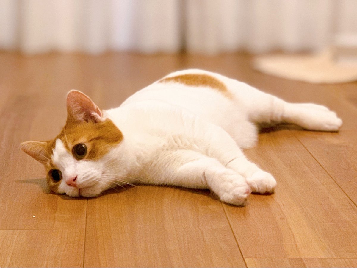間違えて違う方にかじりついてたことに気づいた瞬間の猫です