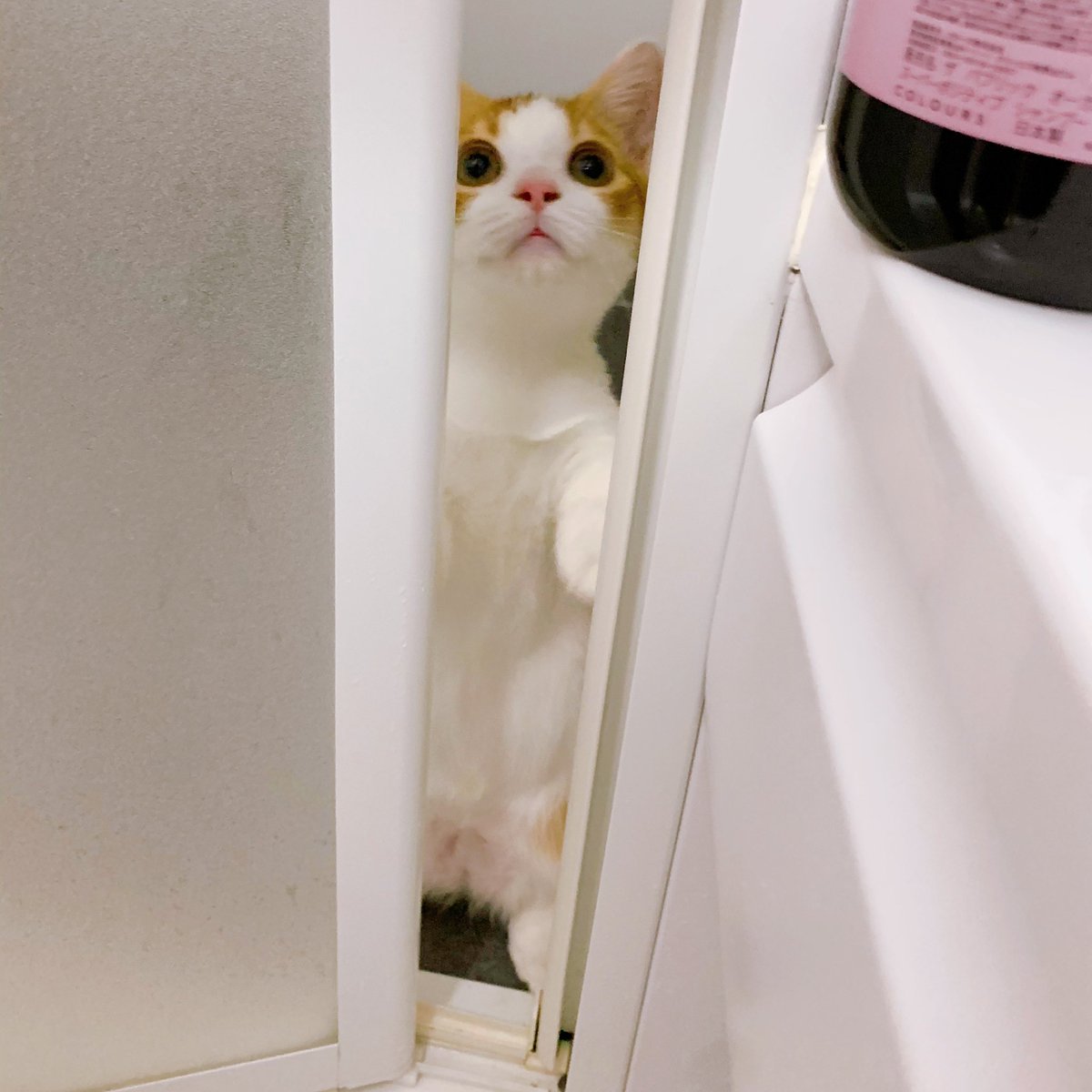 コネコチャンですが、トイレのカーブが気に入ってしまってずっとトイレにいる。