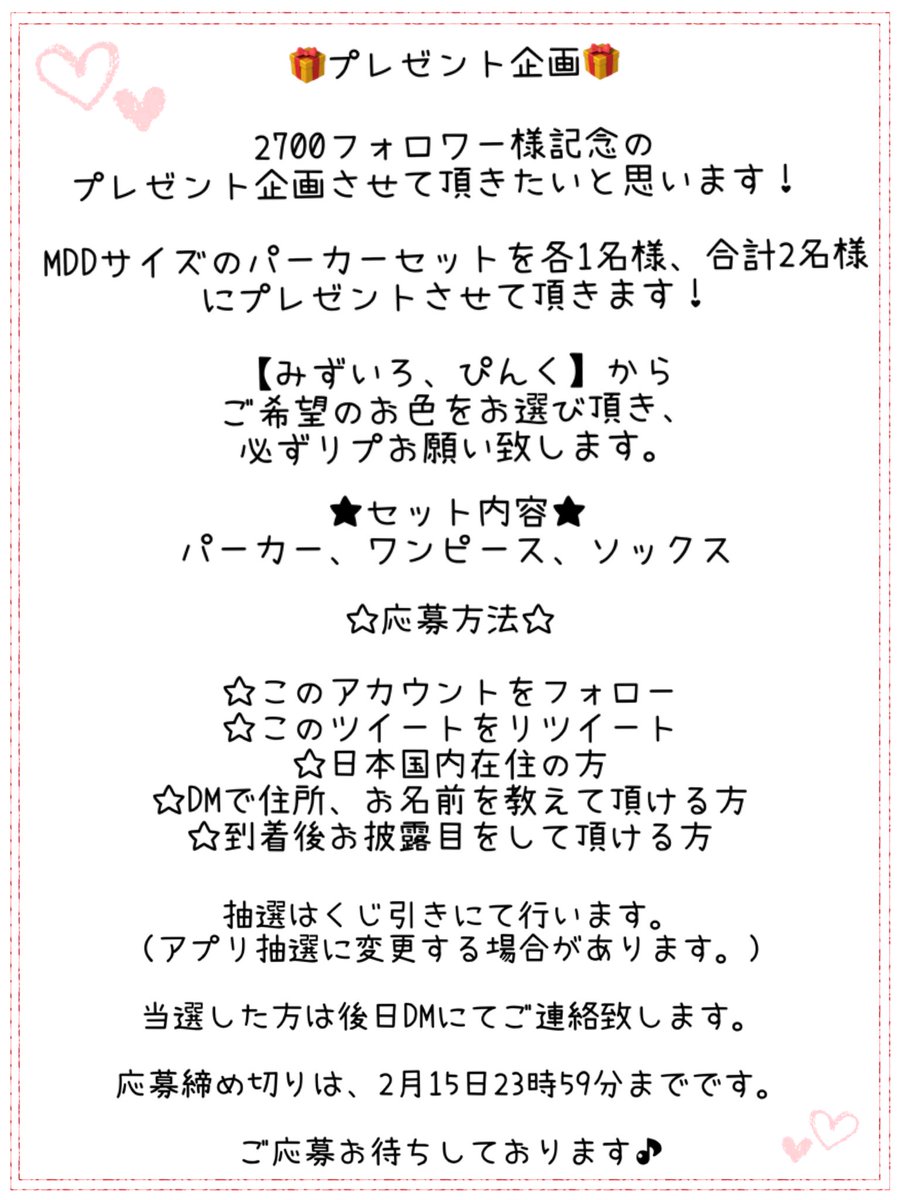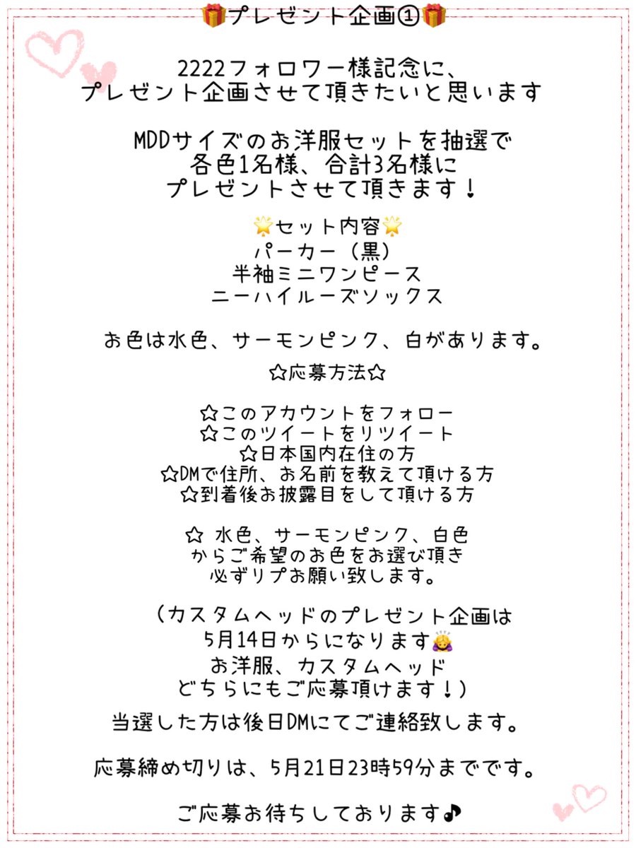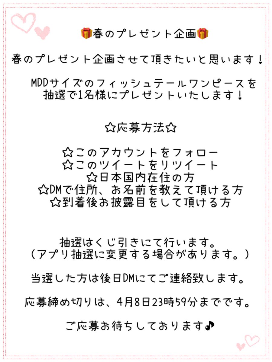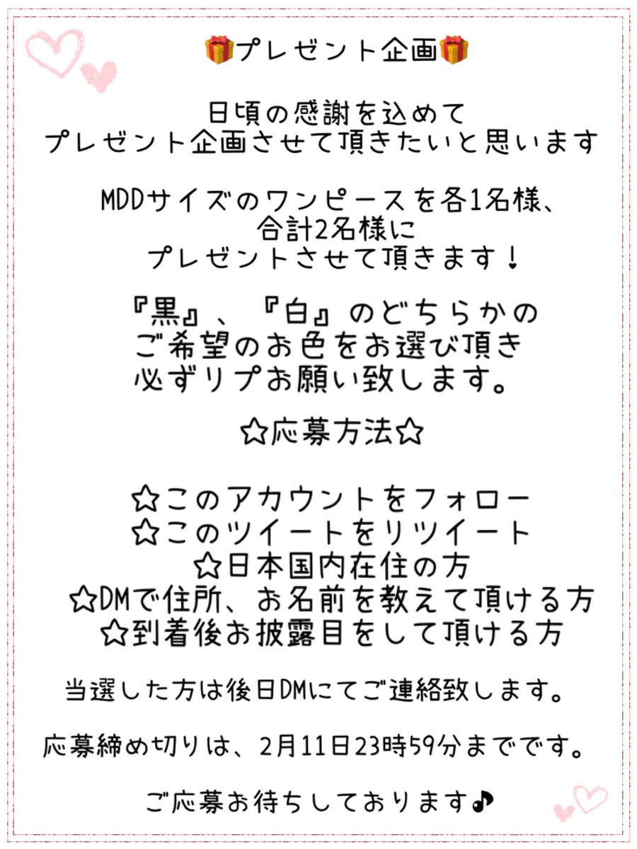 DD、MDDサイズのワンピースを、抽選で各1名様、合計2名様にプレゼントさせて頂きたいと思います🌟
