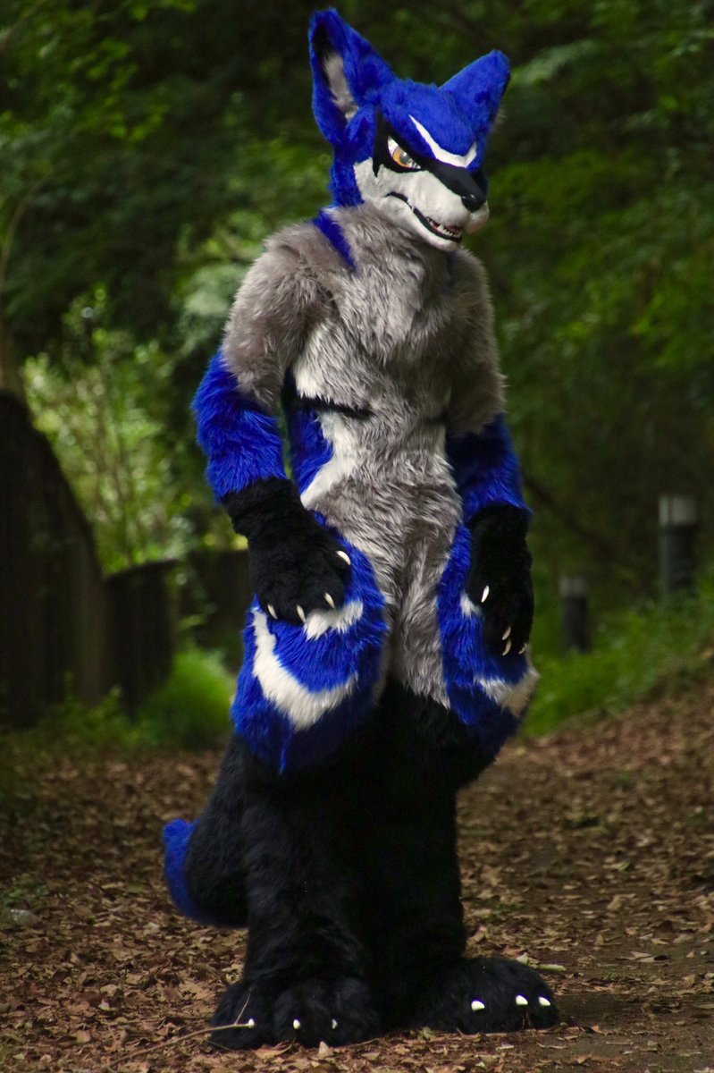 【DEBUT!】ナディダスさん@Ride_kemono がかつて大事にしていたバイクが、ケモノとして新しい命を得ました!シルバーに鮮やかなブルーが際立つこのオオカミは、ライドと名付けられました。犬工房としては二匹目のライドです。 #FursuitFriday