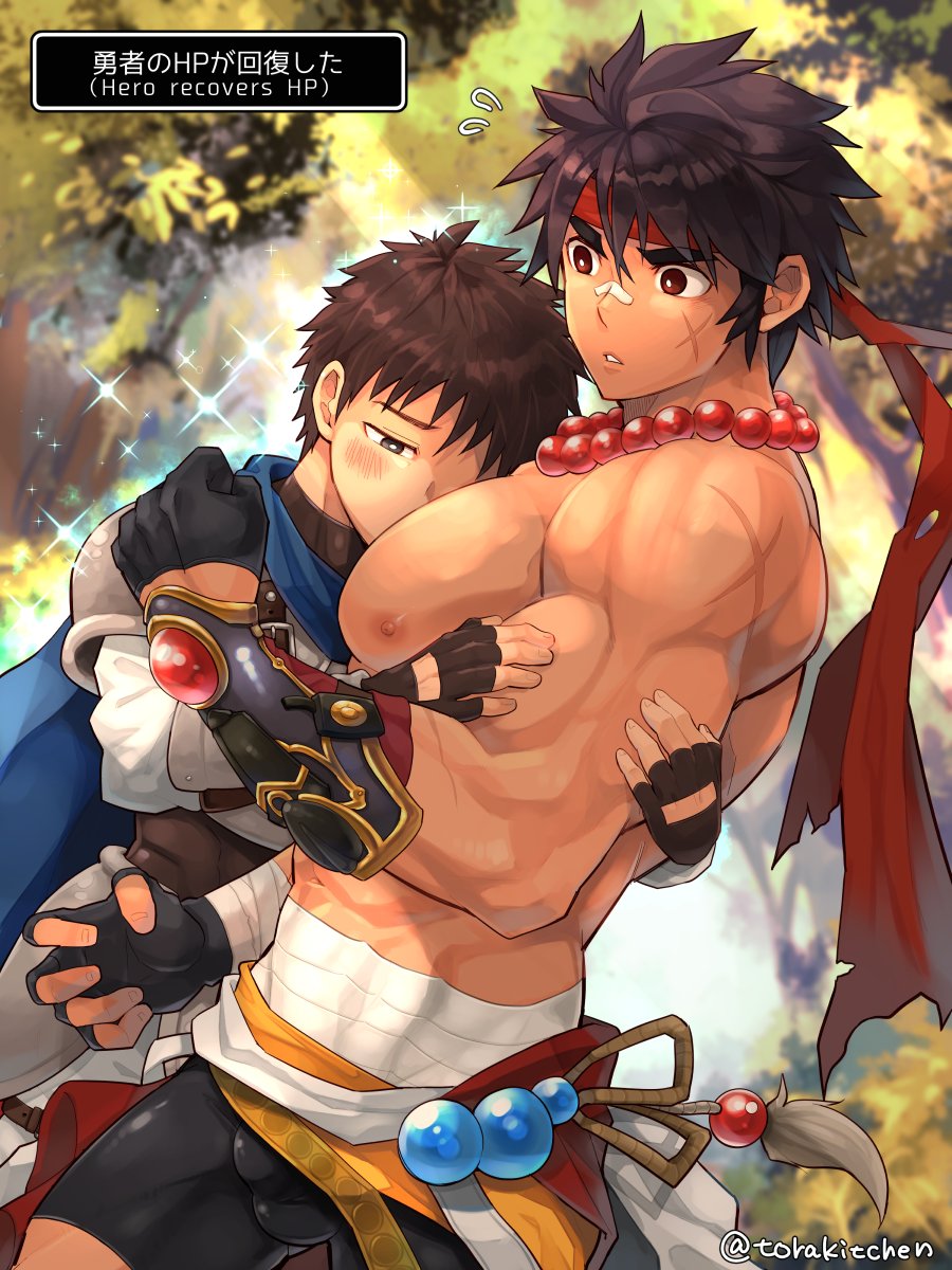 なぜだか格闘家の筋肉を触っているとHPが回復する勇者くん。