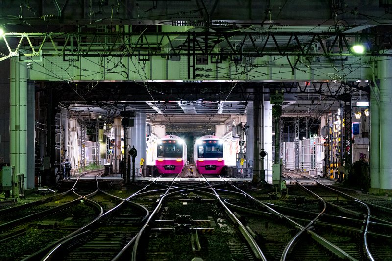 本日付でプレス発表された通り,件の乗車位置目標の正体はAE形による「臨時ライナー」用でした。アクセス線開業当時から朝ラッシュ時に設定されていた同線経由の回送列車をいわば通勤ライナー的に活用したもの。アクセス線列車ではありますが,北総沿線にとって初の「乗れる」有料特急列車が走ります。 twitter.com/akaden3150/sta…