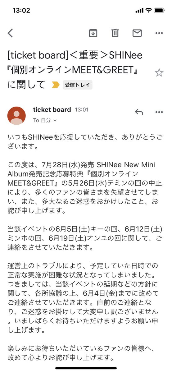 4連休があまりにも忙しくて、日にちもわからんくらいやけど、ちゃんと前日メール来ました!