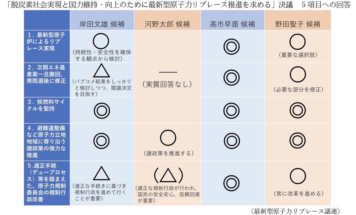 「脱炭素社会実現と国力維持・向上のために最新型原子力リプレース推進を求める」決議 5項目についての