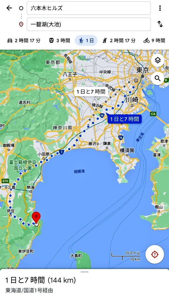石神村(東伊豆)から司帝国(六本木ヒルズ)まで、本当に歩けるのか実験する。