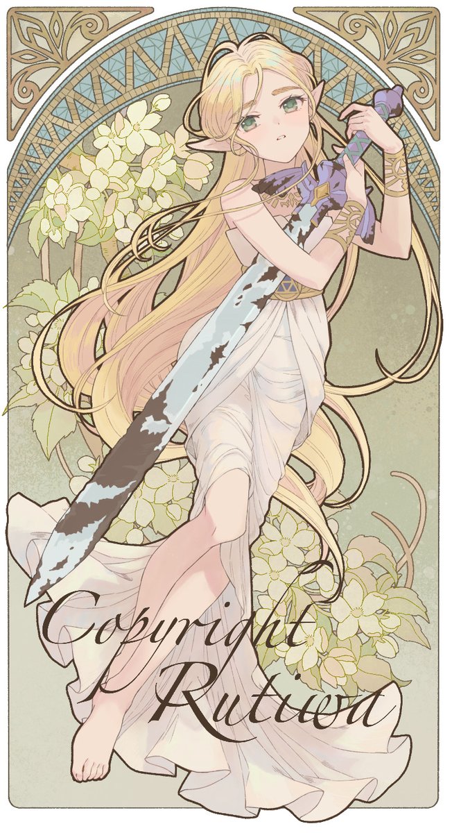 Long time no see.😅 My recent work , Zelda in Mucha "4 seasons" style. This is the part I, other 3 in painting...