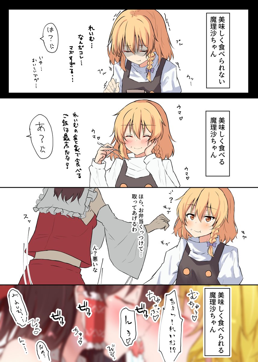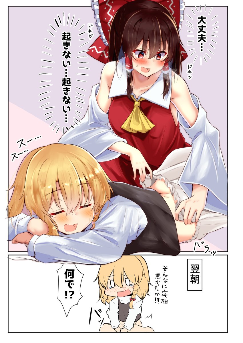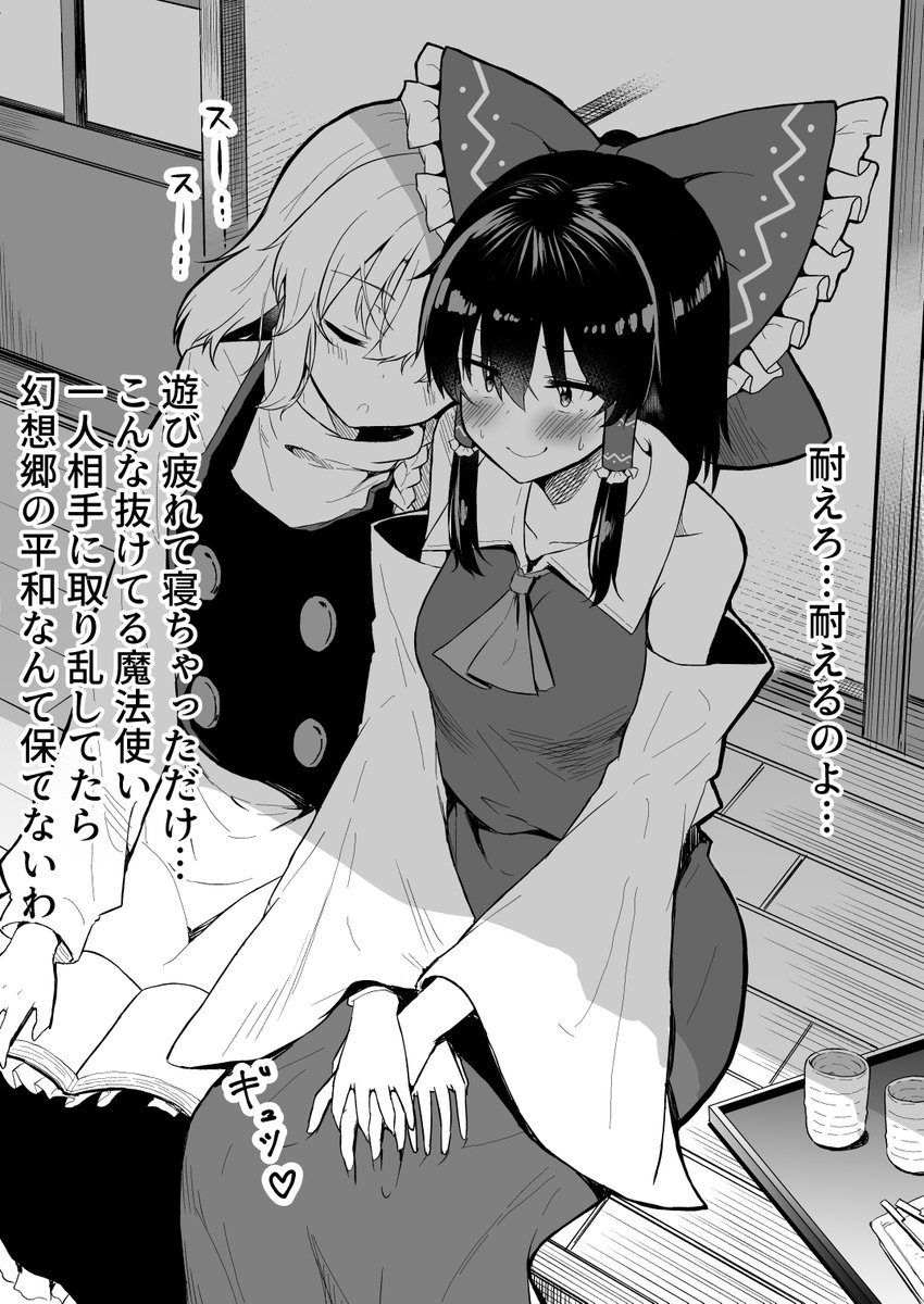 普段は言われるがまますんなり抱かれるのに、いざ自分から誘うとなると意識しちゃって恥ずかしくなっていつも通りふるまえなくなっちゃう魔理沙が可愛いのよね(霊夢)