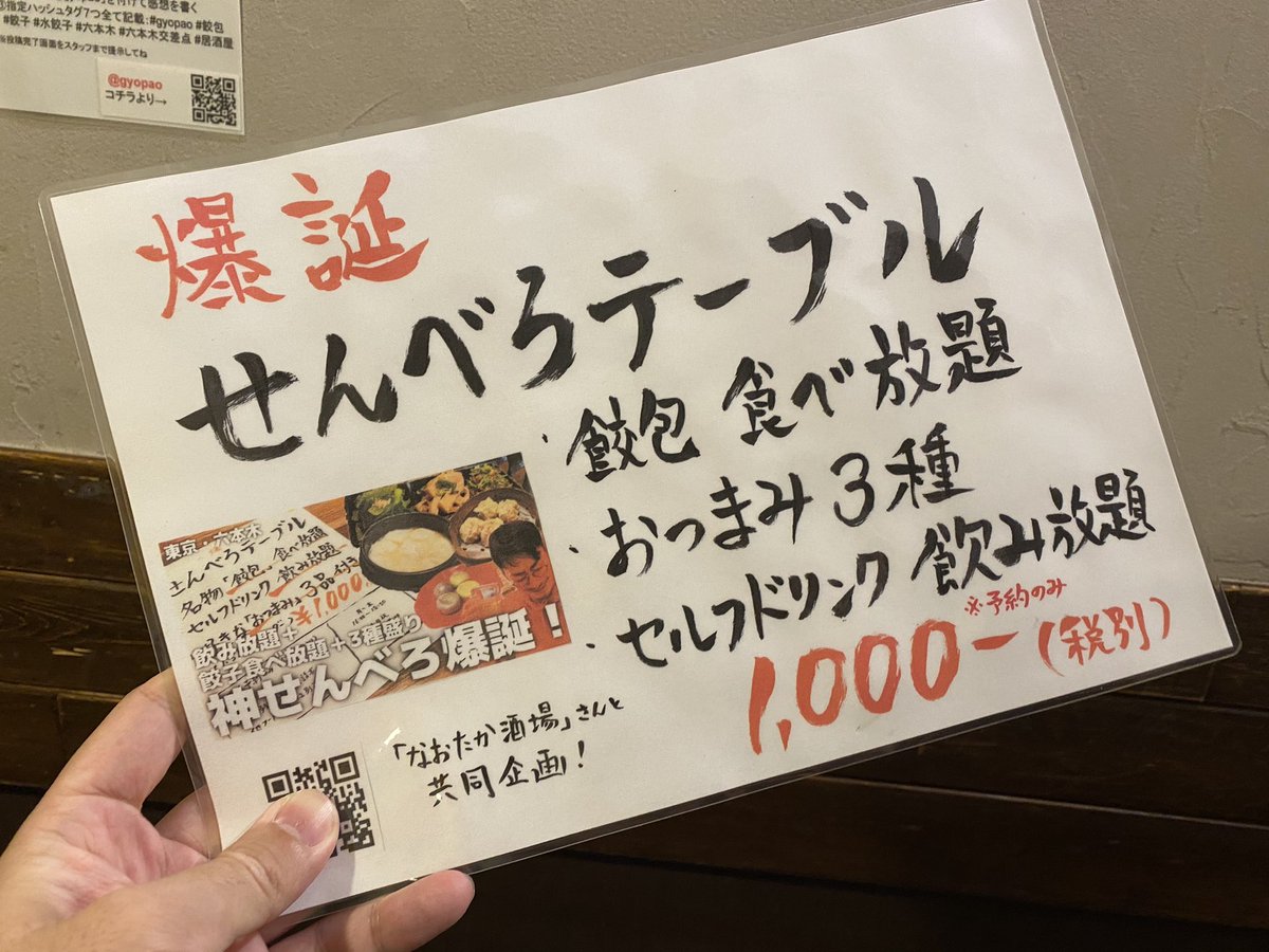 バズったので追記。交差点んとこの「餃包」ってお店です。早割的な感覚で1000円でやってるみたい!入店時間は日によって違って予約必須だそうです。間違ったこと書いちゃうと嫌なのでHP見てください!