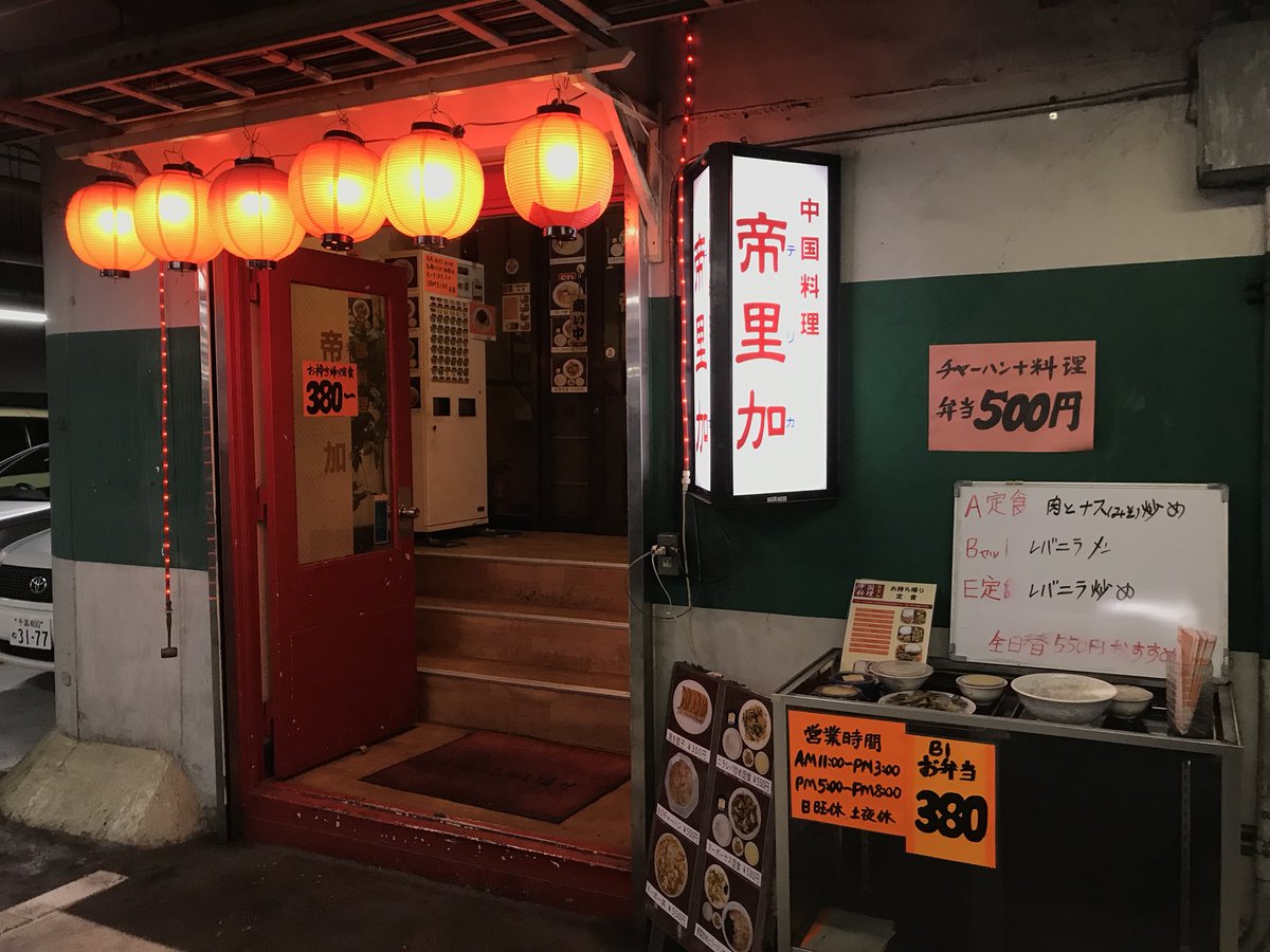地下駐車場の奥深く、歩いていると急に壁に赤提灯と扉が現れ、その謎の小部屋が中華料理屋となっている。