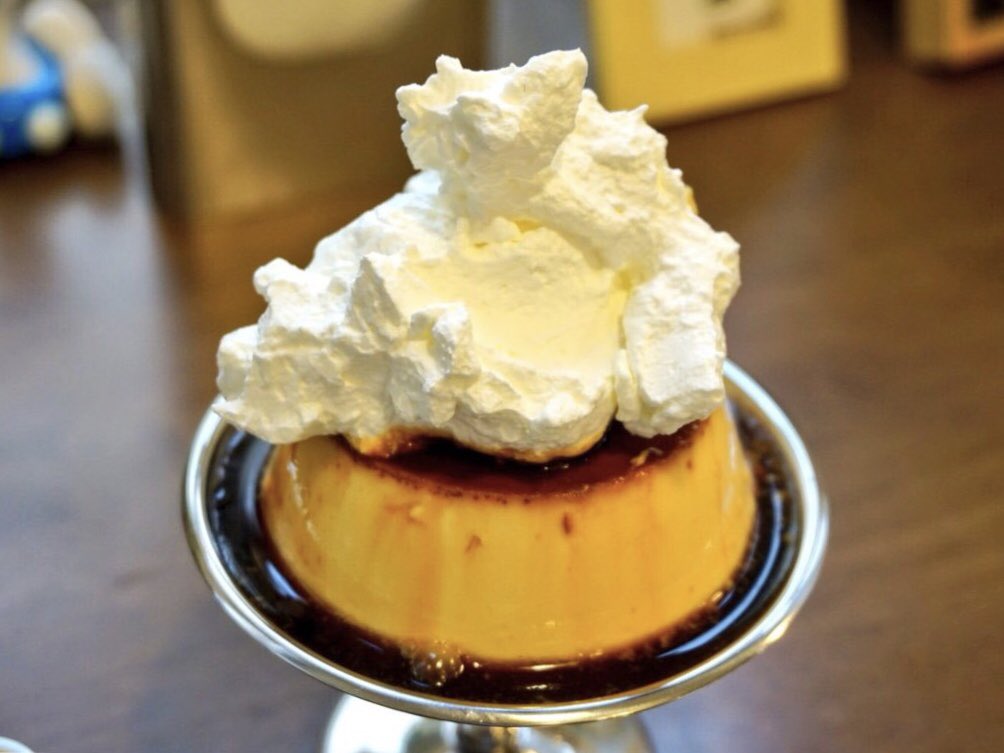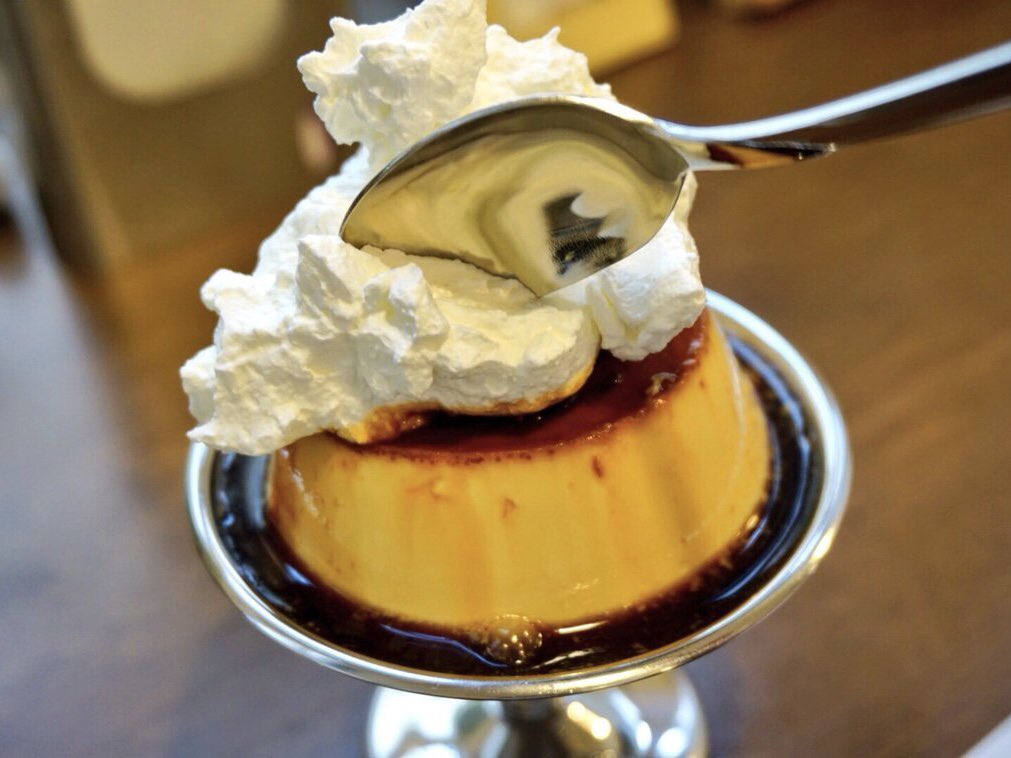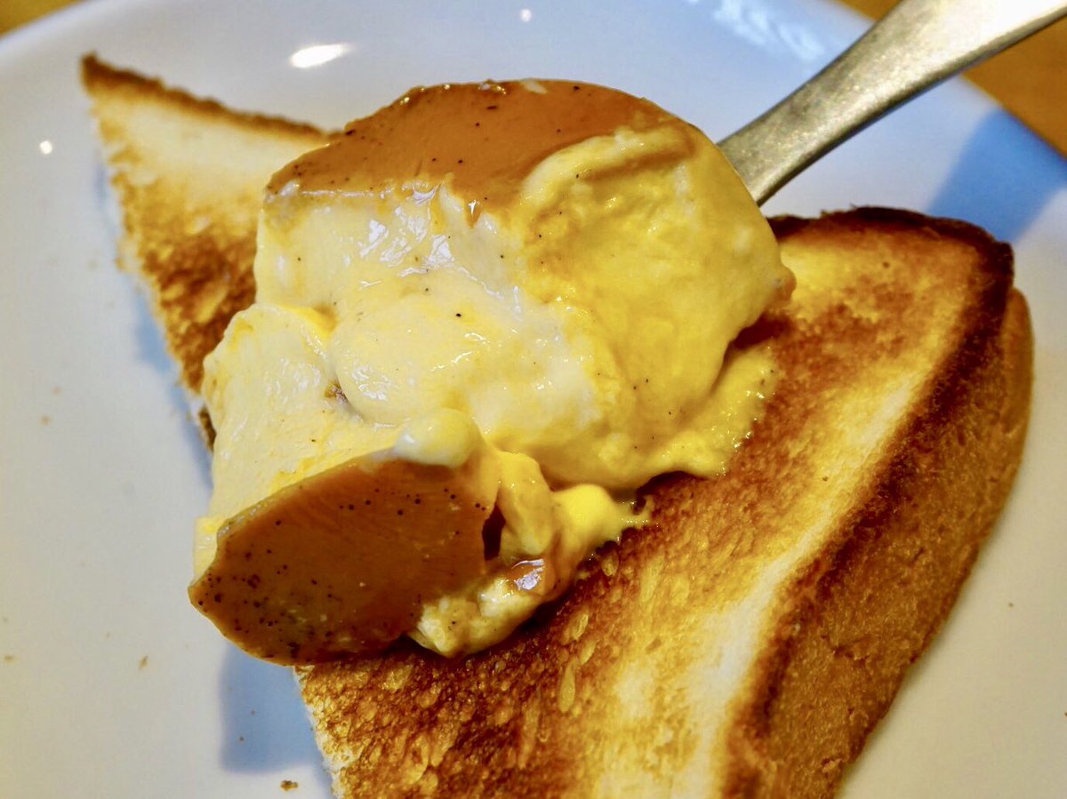 こんがり焼いたトーストに、プリンをたっぷりと塗って食べるメニュー!