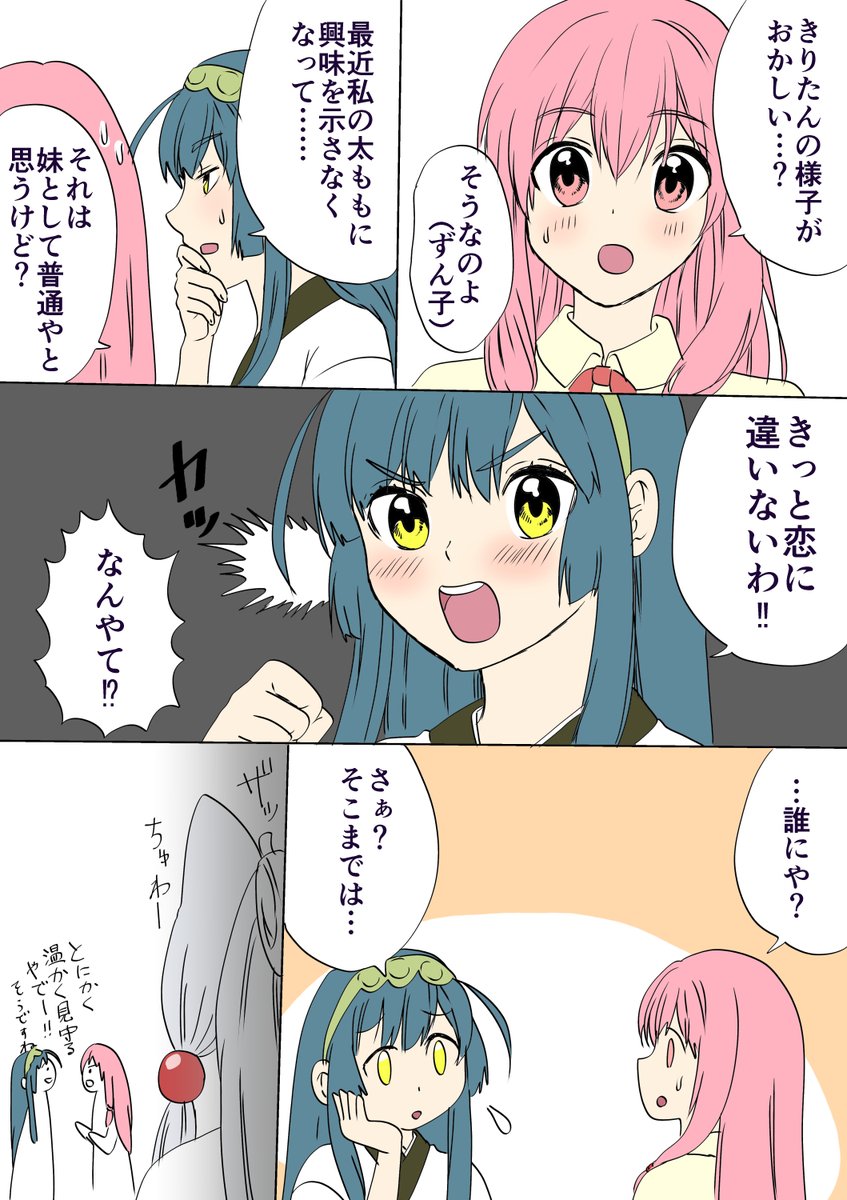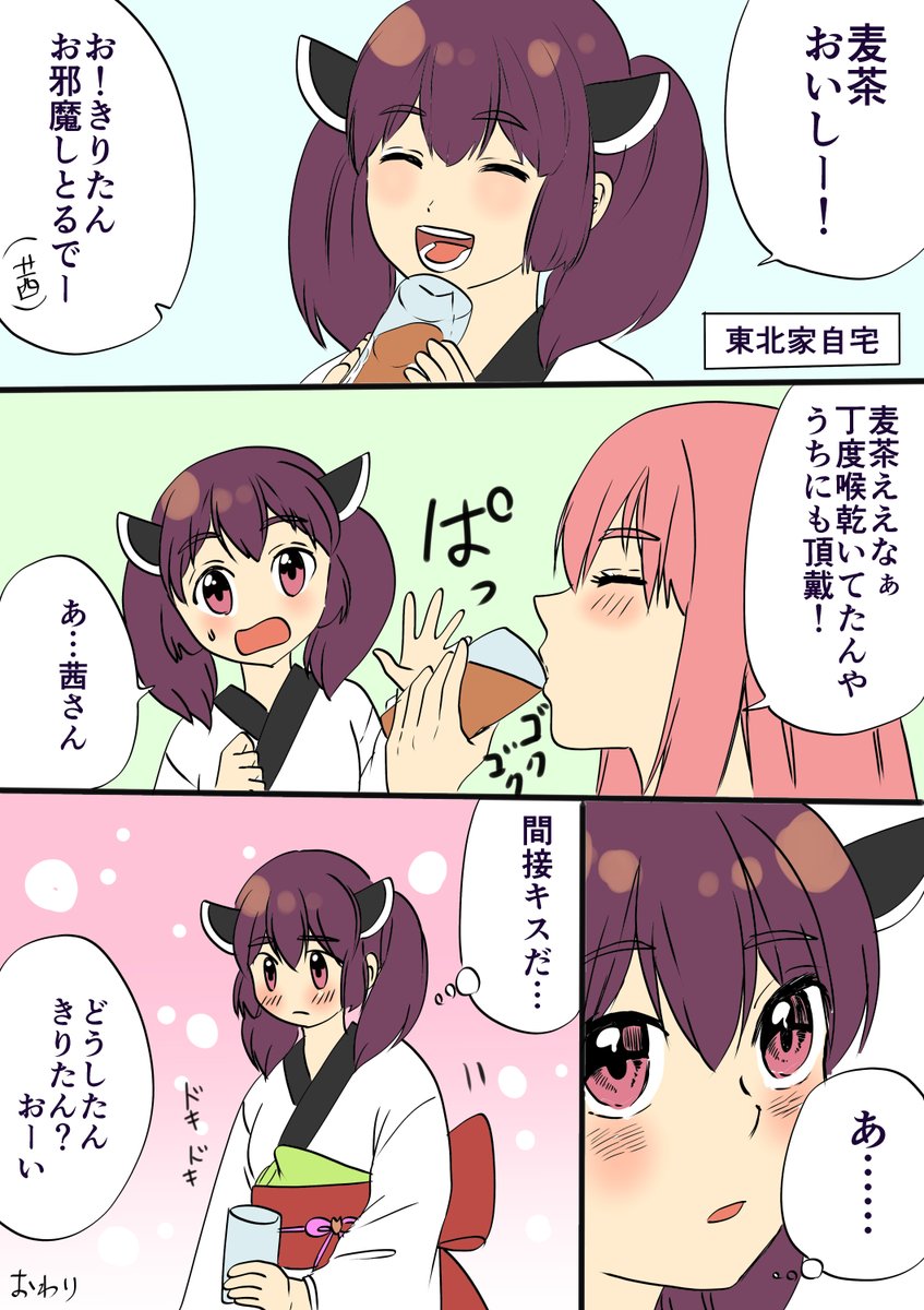 前回、初めて東北家を訪問した葵ちゃん。葵ちゃんときりたんのその後の漫画です( *˙ω˙*)و twitter.com/chiaki_yamada2…
