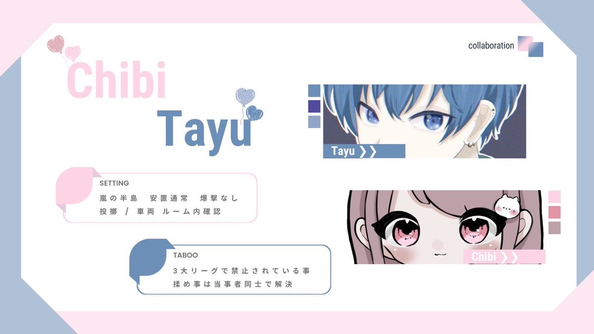 ˗ˋˏ たゆちびコラボ🦖🐈 ˎˊ˗   🕐|10/6 23:30 23時半   🎖|確 1000 × P 一般 500 × P   🔖|@ux_7__ @_Och7〈 応+参 〉    ↳ FF巻込み◎   ✍🏻|ID+23:30 デュオ のみ   ✉️|22時~24時半交換枠   🪧|パスツイJust ↪︎ @_Och7   🔎|#デュオゲリラ #デュオゲリ #デュオ
