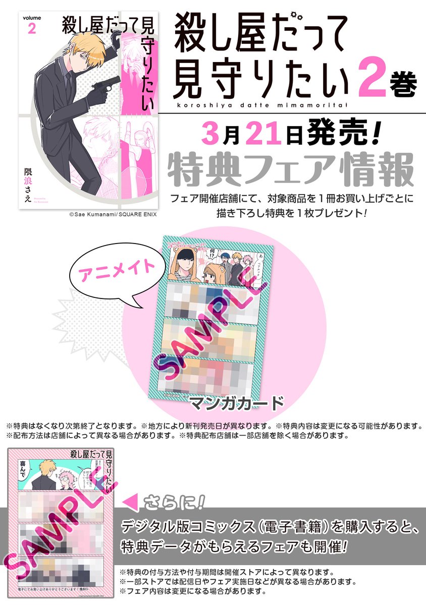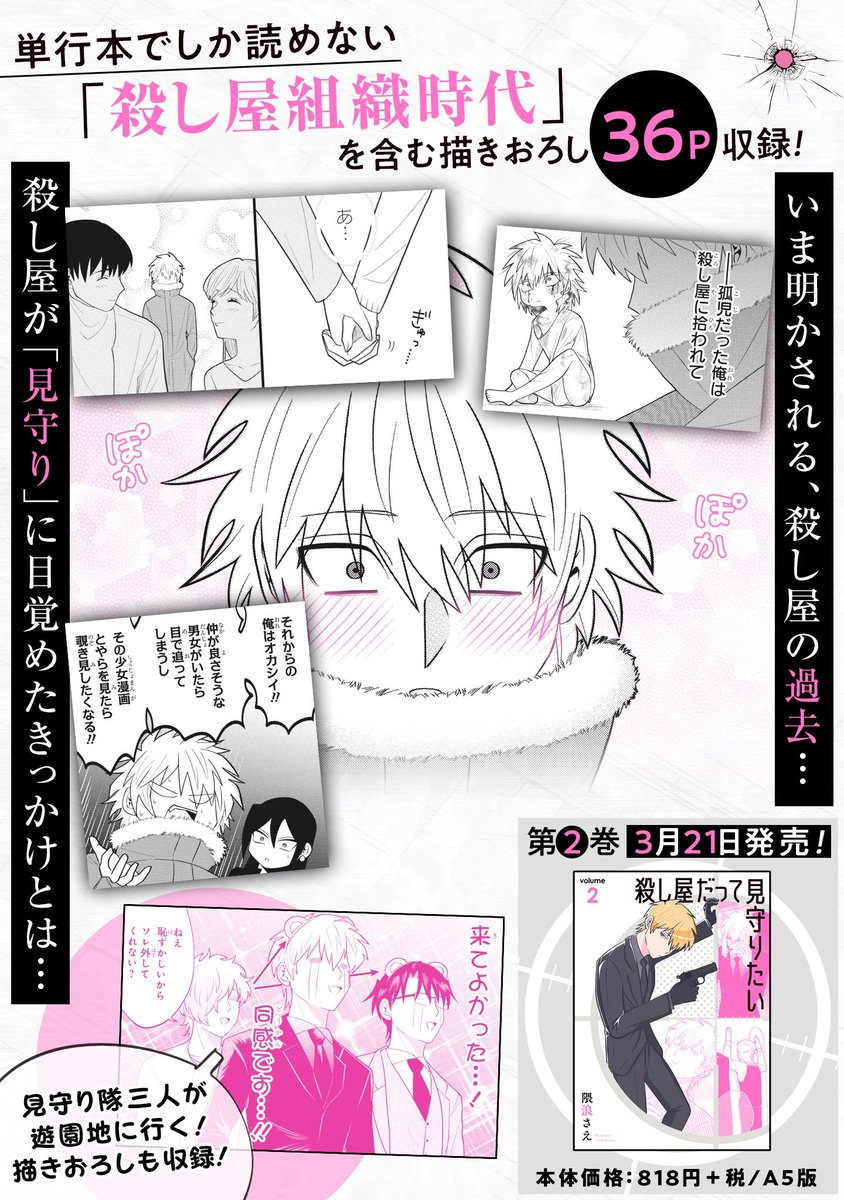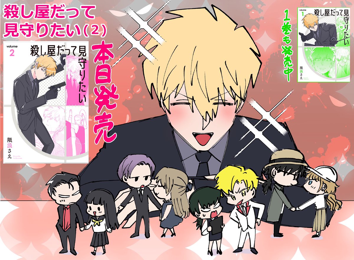 本日「殺し屋だって見守りたい」2巻発売です。「買ったよ😊」という嬉しいご報告頂けたら見逃さずイイねしますのでお待ちしております。そして昼頃に殺し屋投稿しますので読んで頂けると嬉しいです。よろしくお願いいたします。