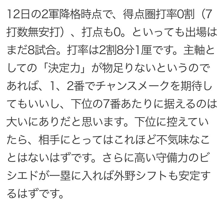 別にただ若手が抑えられず打てず負ける、とかならまだわかるんですよね