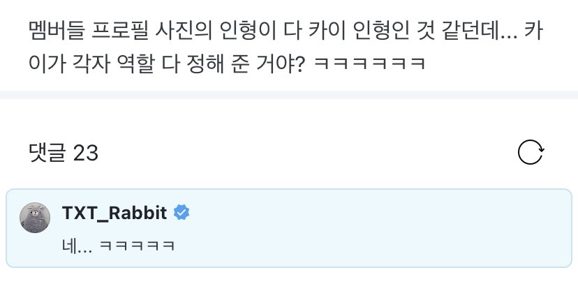 💛 all the members’ profile pictures look like kai’s plushies…did he decide one for each of you? hahahaha