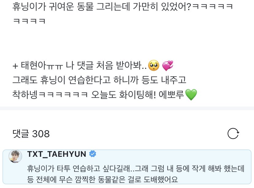 🐿 it’s because huening said he wanted to practice tattooing..so i was like “sure, tattoo something small on my back” but he filled my entire back with things like adorable animal tattoos