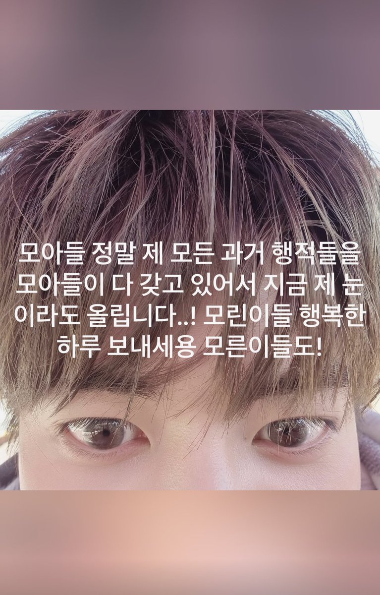 “MOAs already have all of the traces of my past (*baby pictures) so I’m uploading a picture of my eyes right now..! (cute tone) MOA-children, have a happy day today..MOA-adults too!”