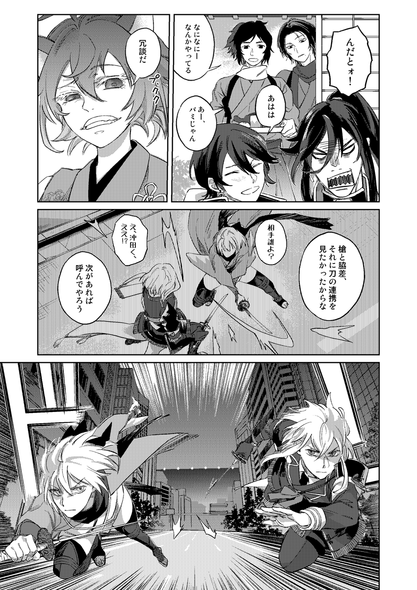 FGO新選組 vs 刀剣乱舞阿吽組のゴチャマン剣術バトル漫画。7/30新刊予定です(1/3)