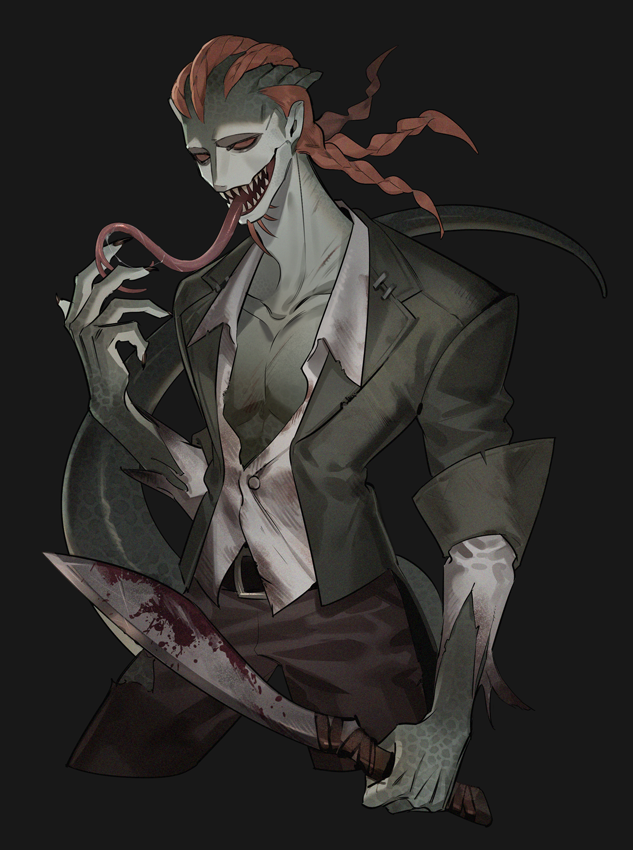第五人格新ハンターのリザードマンえっちじゃん…URの衣装最高じゃん…🙏元研究者だから落ち着いた感じのキャラかなと思ったけど待機画面の座り方を見るに見た目通りワイルドオラオラ系かな🦎