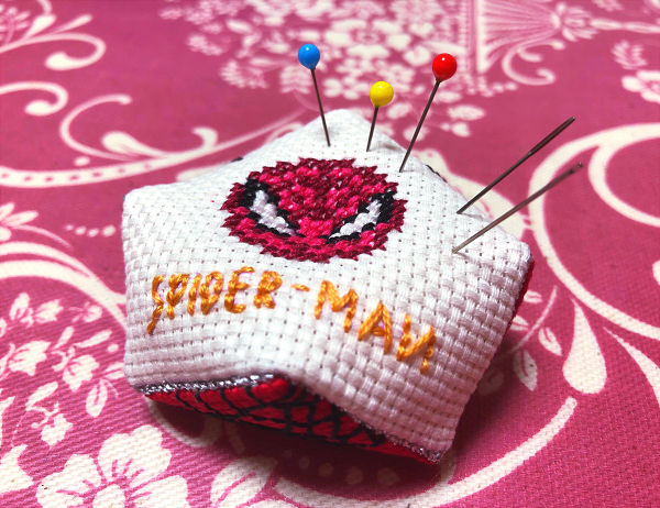 昨日突如刺繍をやってみたくなって母に教えてっていったらスパイダーマン針刺しを作ってくれた🕷️ヴェノムとスパイディのくるみボタンは図案描いてチクチク頑張った💪