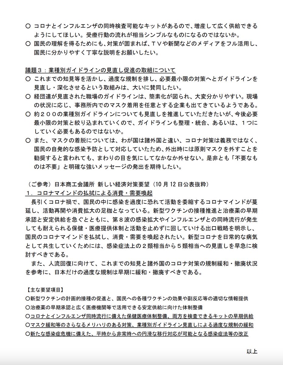 どうも、マスクを外せというのは、分科会メンバーの幸本 智彦 東京商工会議所議員(アクサ生命)が言っているようだ。