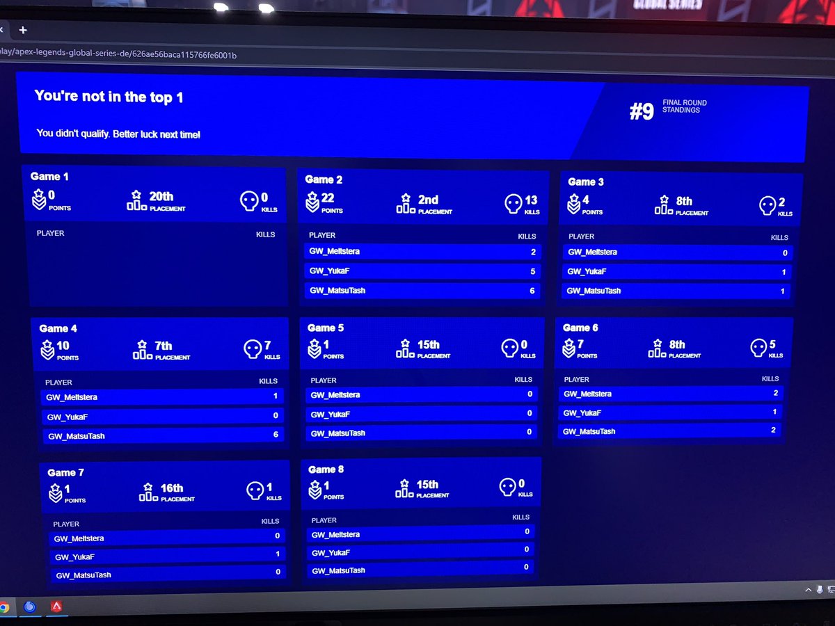 決勝9位でした とにかく悔しい プレイオフ通して応援ありがとうございました 僕たちは必ずもっと強くなります