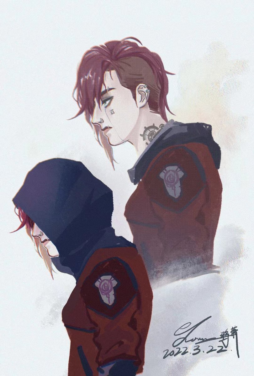 老是脑补蔚手插夹克的兜在那扑闪扑闪可爱死我,画出来结果像是蔚和小蛋糕在说"Welcome to my arms"我直接扑上去#CaitlynxVi #piltoversfinest #caitvi #violyn #arcane #Vi