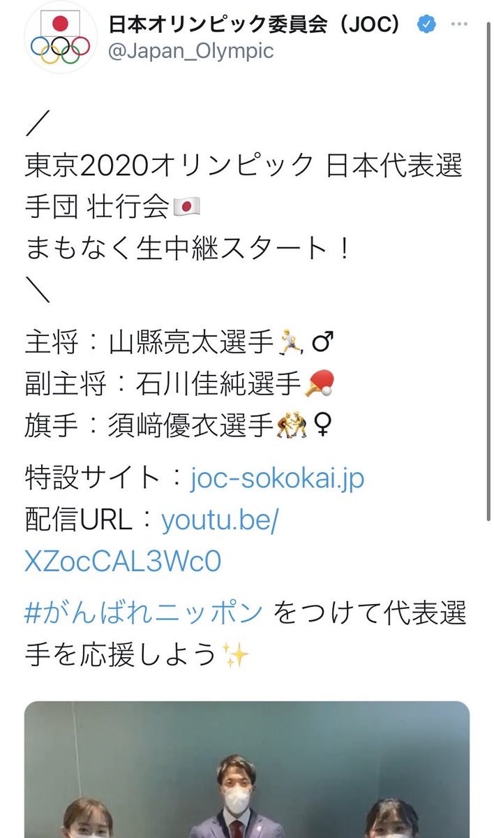 あらら、日本オリンピック委員会 @Japan_Olympic さん。私が引用ツイートに使わせていただいた、この18:30のツイート、削除してしまいましたか。せっかくの壮行会の予告ツイートでしたのに。もしかして批判が殺到したからでしょうか。当然ですよね。この状況で五輪、楽しめる人なんていませんものね。 twitter.com/kimuratomo/sta…