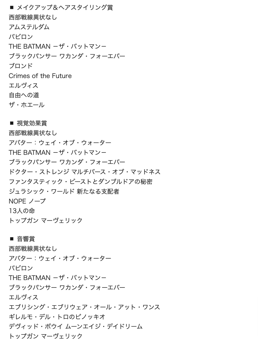 アカデミー賞を占う上で最重要視されるブロードキャスト映画批評家協会賞ノミネーションが発表。「エブリシング・エブリウェア・オール・アット・ワンス」が最多13部門14ノミネート!主演男優賞部門でトム・クルーズIN!「RRR」が作品・監督ほか5部門で候補に!oscar-no-yukue.com/95precursors/#…