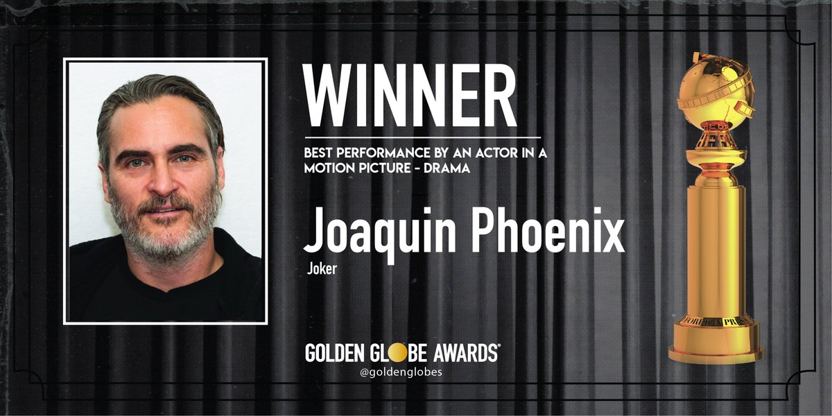 ドラマ部門主演男優賞を受賞したのはホアキン・フェニックス(ジョーカー)!!!!前哨戦でリードしていたアダム・ドライバー(マリッジ・ストーリー)を逆転しての受賞。これでアカデミー賞戦線はさらに混戦に。