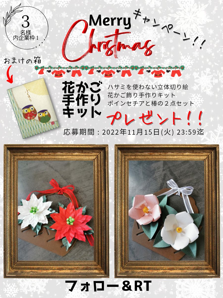 ハサミを使わない立体切り絵 花かご飾り手作りキット ポインセチアと椿