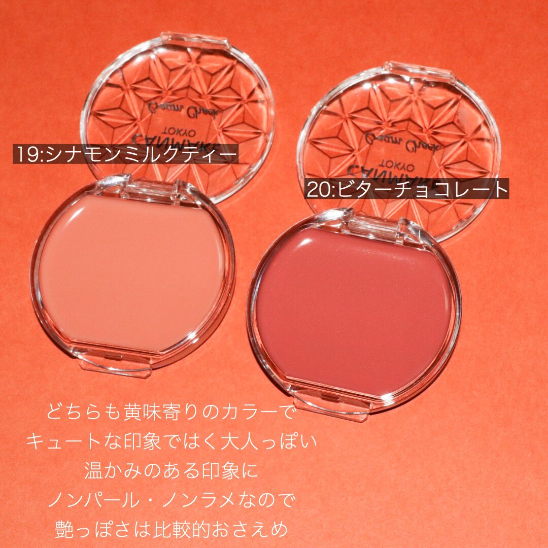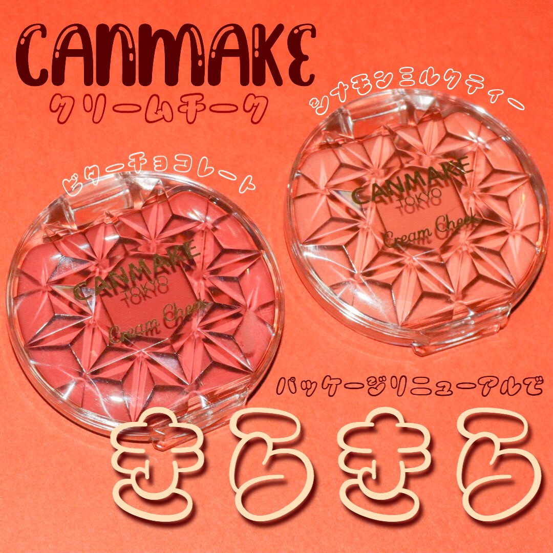 キャンメイクのクリームチークがきらっきらにリニューアルをするよ〜まずもうこのきらんきらんの見た目でハートを鷲掴み。そしてこの秋カラー。最高ですね。シナモン系カラーとチョコ系カラーは間違いない。限定色なのが残念だけど7月末店頭に並びます。おすすめはシナモンミルクティー