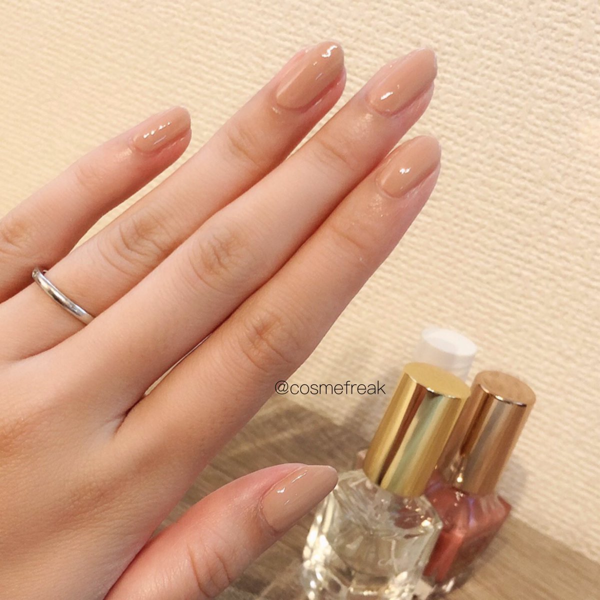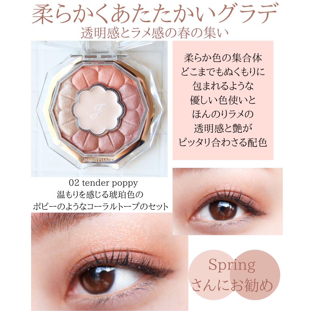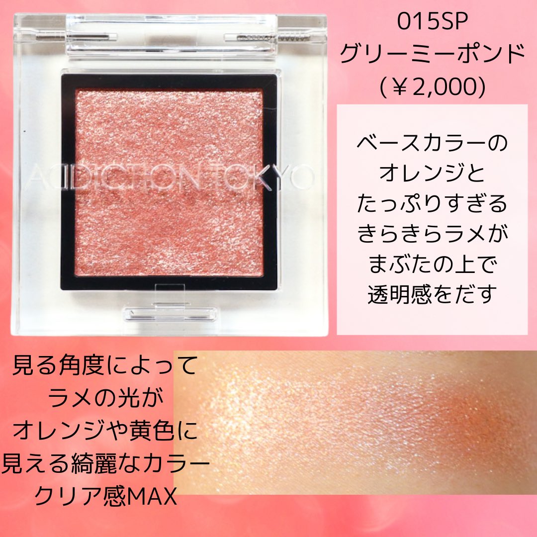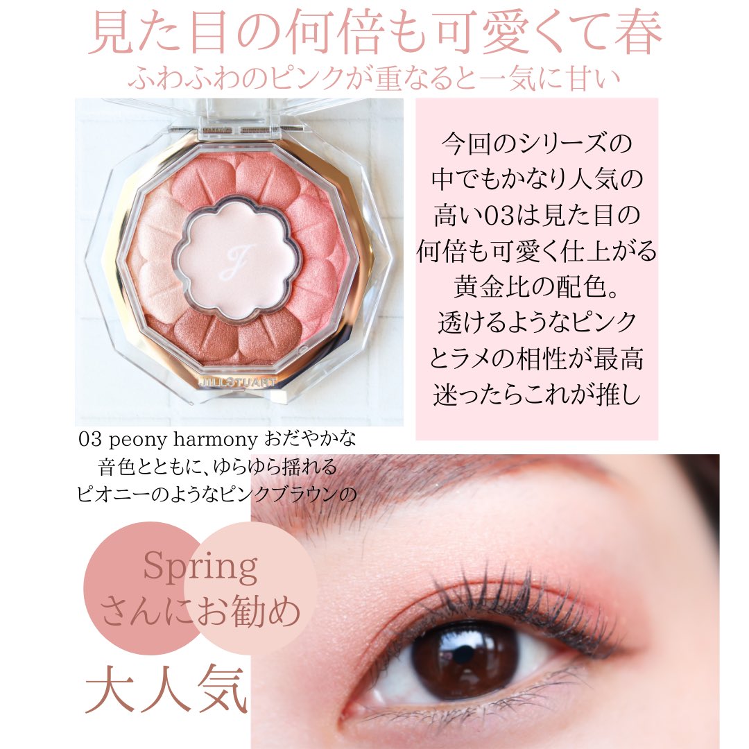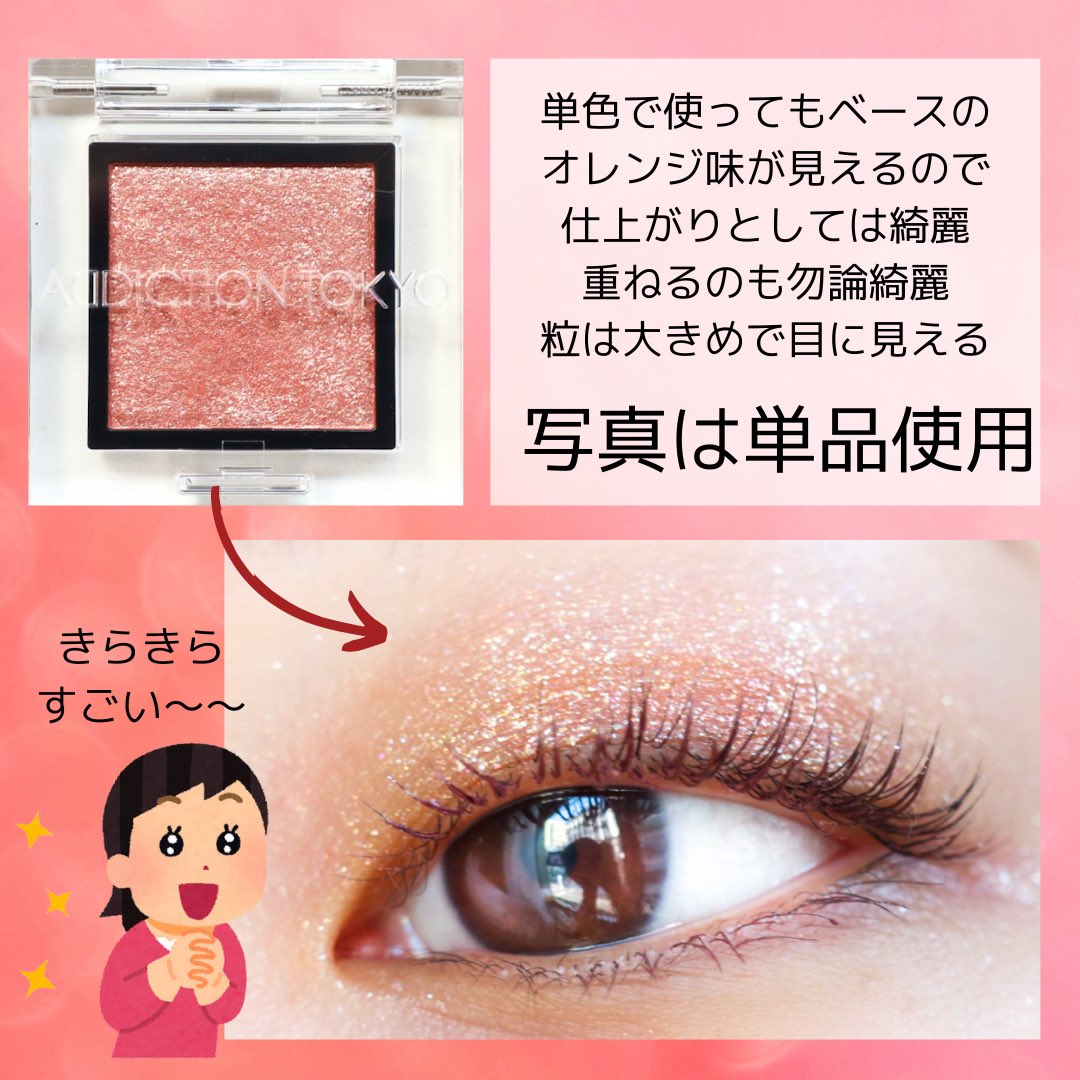 #キャンメイク 4月新作ジューシーピュアアイズのチャイティーローズ溜息が出るキラキラ具合。つける人によってローズっぽくなったりベージュっぽくなったり結構違う。真ん中のキラキラは指にとってちょんちょんで。私は結構黄味に寄っているタイプ。
