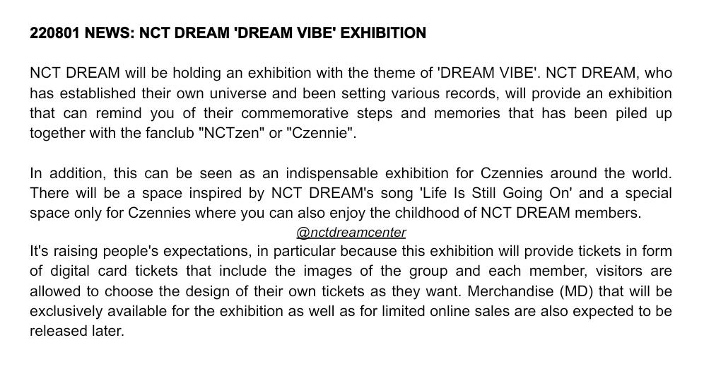 220801 Official Description of NCT DREAM 'DREAM VIBE' Exhibition