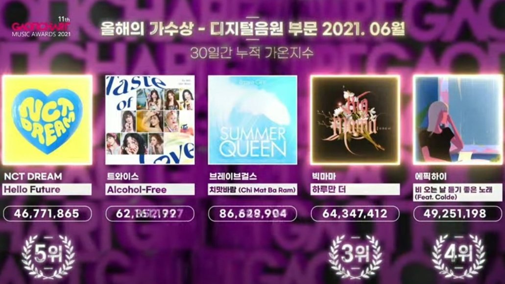 220127 NCT DREAM 'Hello Future' ranked 5th for Artist of the Year - Digital Music June 2021 at the 11th GCMA 🔥
