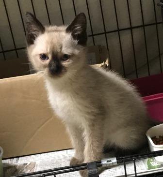 三ツ割,緑が丘三丁目で保護。シャム風の猫は3ヶ月齢程度,黒猫は高齢のようです。心当たりのある人は,市保健所生活衛生課へ連絡を。詳しくはこちら