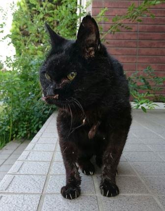 西見前15地割,見前小学校近くで保護されました。けがをしています。
