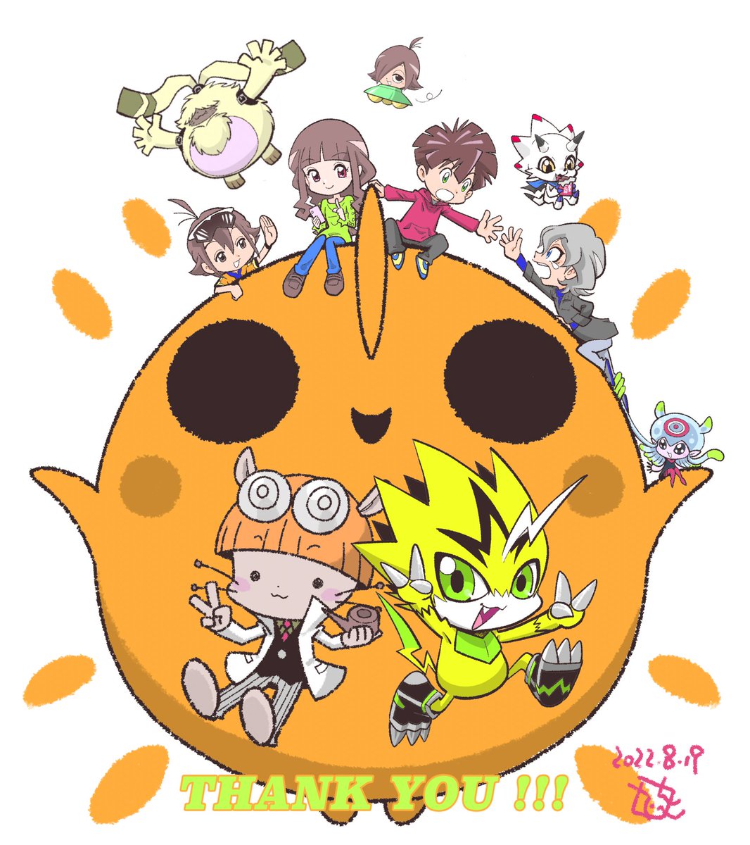 『デジモンゴーストゲーム』13話。衝撃の展開とともに新しいエンディングに。今回もイラストを描かせていただきました。なかよしだいじ🍀!