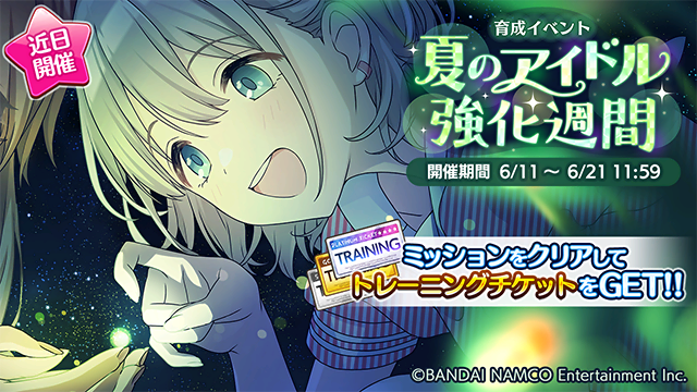 6月11日より、アイドルの皆さんを成長させられる育成イベント「夏のアイドル強化週間」が始まりますよ~。
