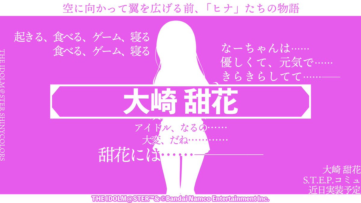 近日、「大崎 甘奈」さんと「大崎 甜花」さんの『S.T.E.P.』編プロデュースシナリオを追加予定です!