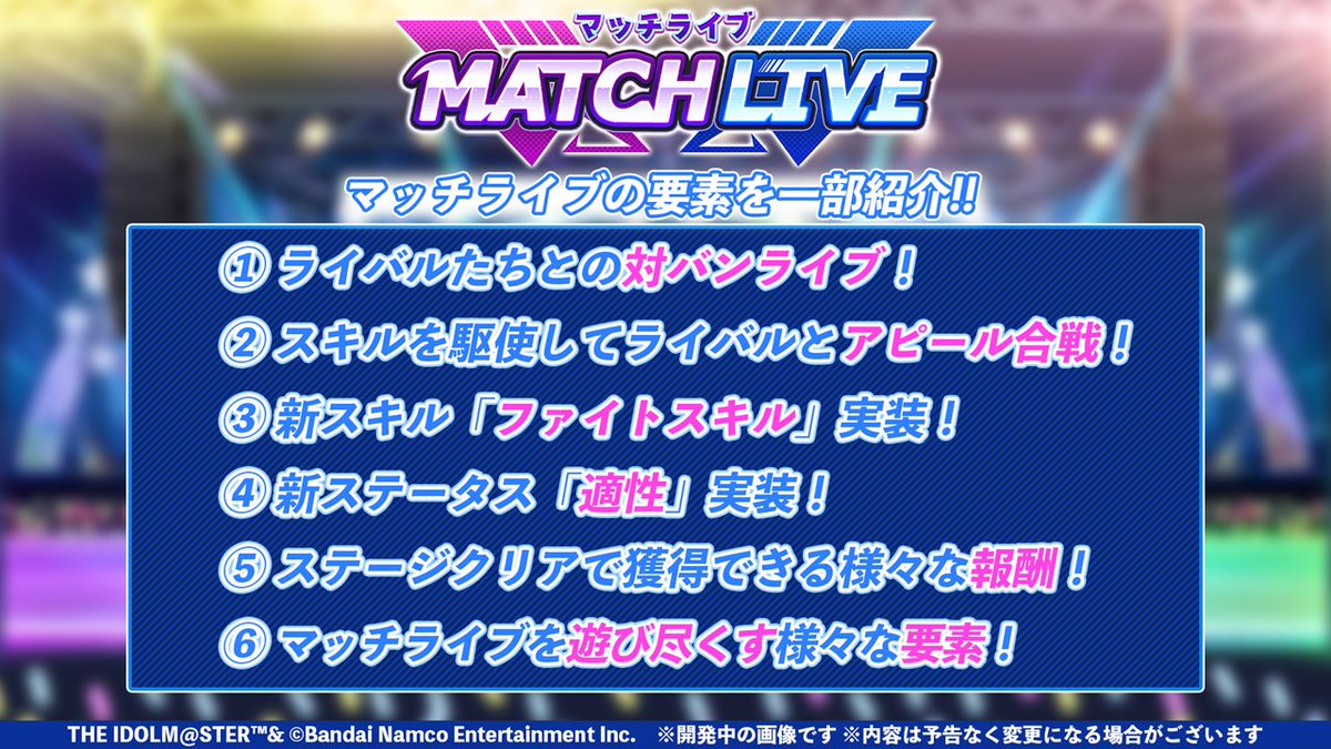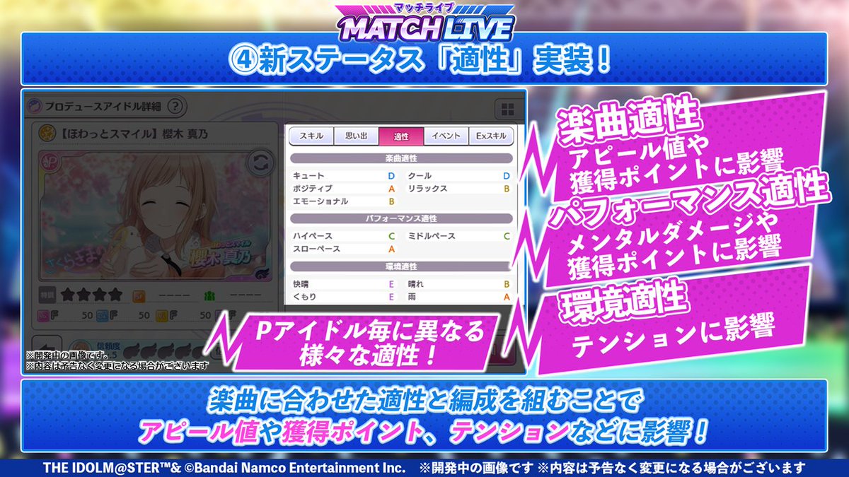 また、「MATCH LIVE(マッチライブ)」では、新スキル「ファイトスキル」や新ステータス「適性」などの要素が登場予定です!