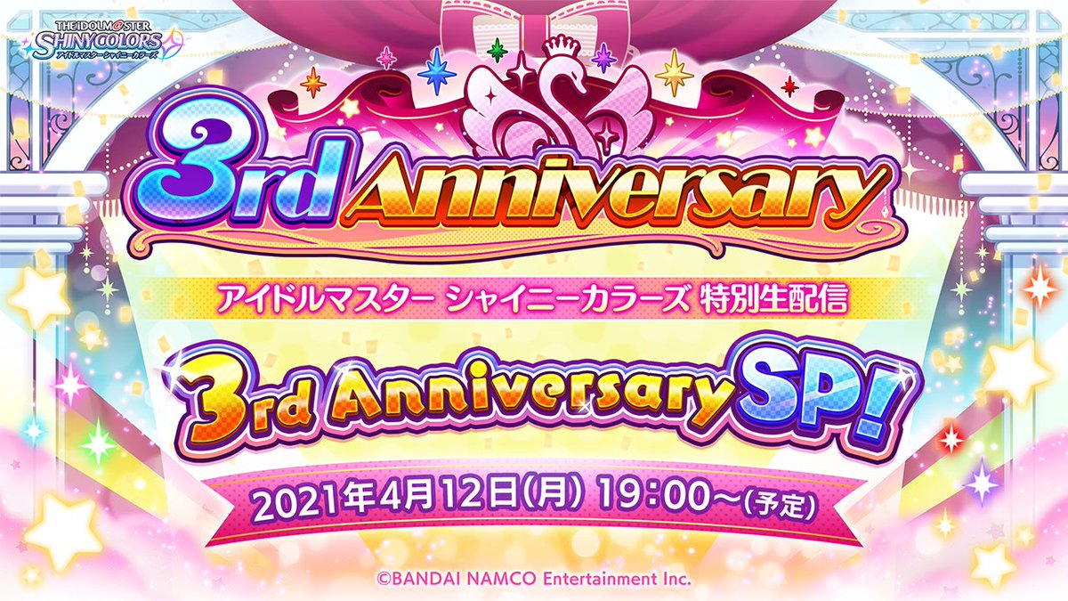 本日19:00より「アイドルマスター シャイニーカラーズ特別生配信 3rd Anniversary SP!」を配信いたします!