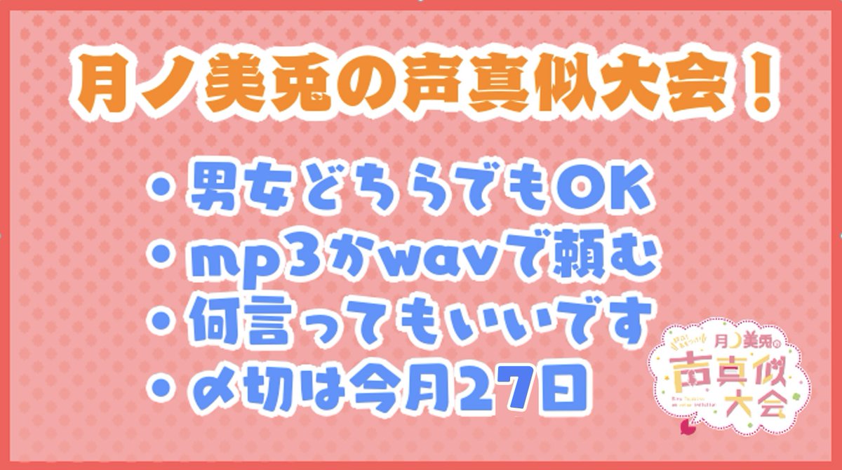 月ノ美兎の声真似に自信リスナーは、ぜひ下のURL(googleフォーム)にて音源をご応募ください〜〜ッ!!音源は配信で一部紹介させていただきます!!