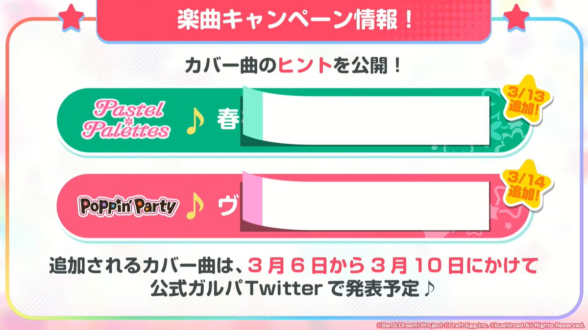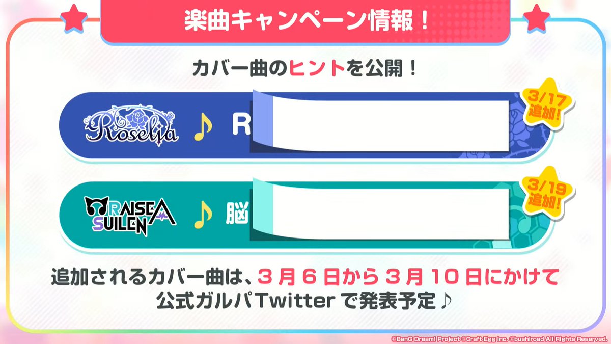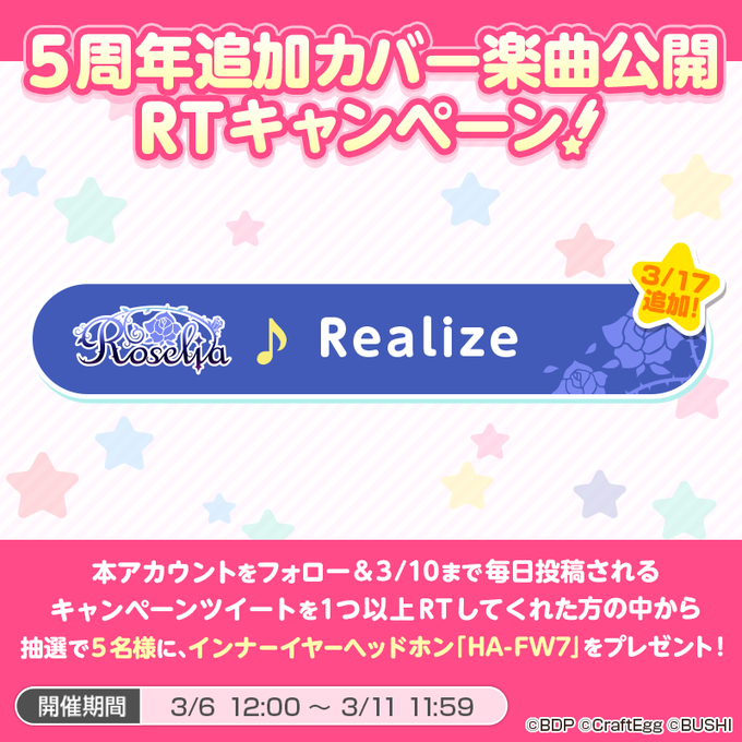 Roseliaがカバーする「Realize」の作詞・作曲の表記がないので鈴木このみさんの曲か玉置成実さんの曲か分かりませんが、去年相羽さんがカバーしていたのでガンダムSEEDの方じゃなかろうか。いやでも鈴木このみさんもリゼロも過去にガルパとコラボしてたし。どっちなのか? twitter.com/aibaaiai/statu…
