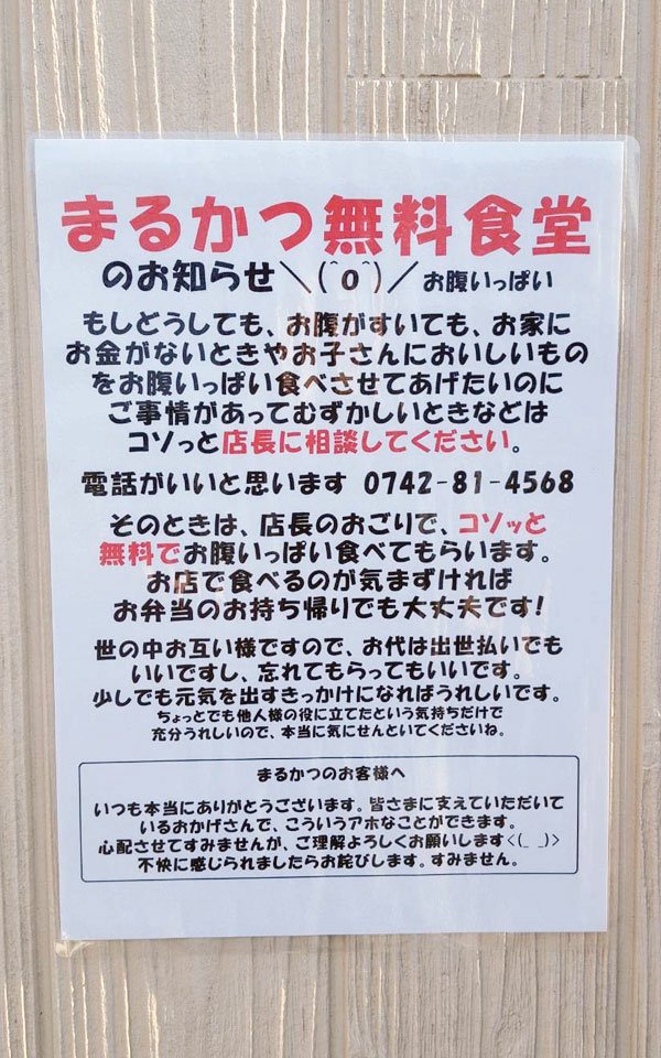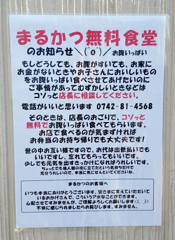4年前の今日、できることから、と始めさせていただいた無料食堂ですが、今まで約900名の方にご利用いただきました。皆様のご理解、ご声援のおかげで続けられております。ありがとうございます。 twitter.com/marukatsunara/…