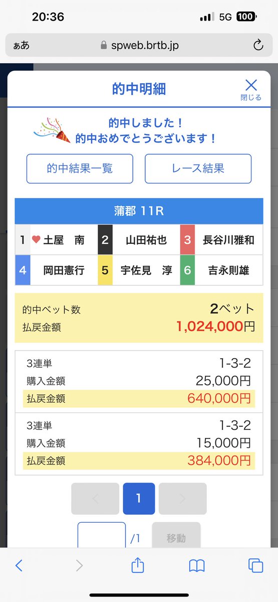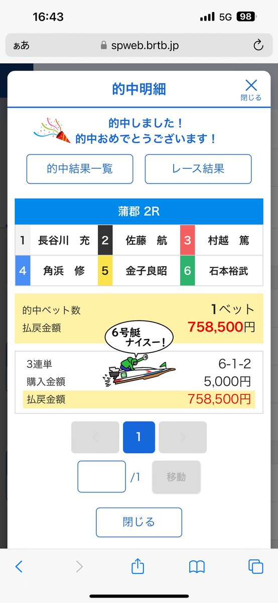 【蒲郡2R】6-1-2 151.7倍 万舟券🔥