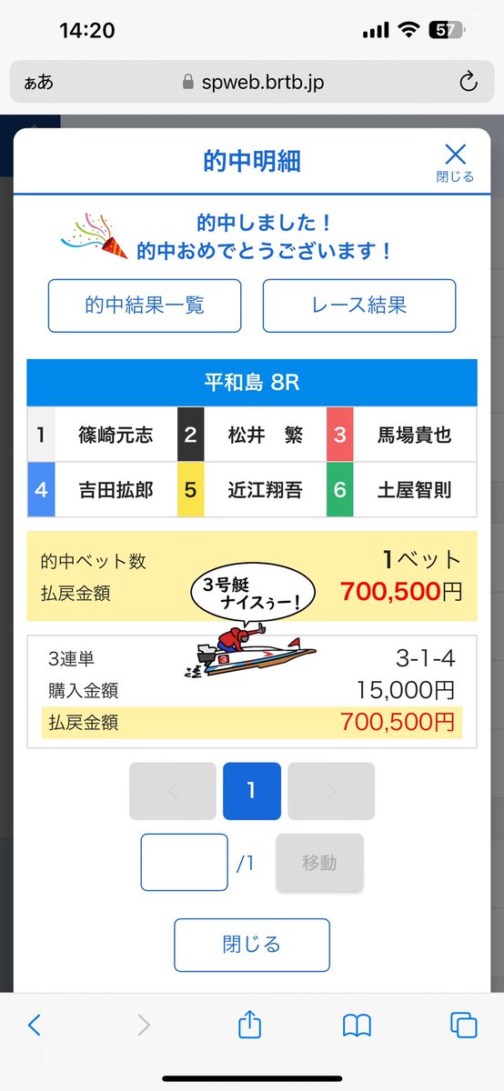 【平和島8R】3-1-4 46.7倍 高配当🎯
