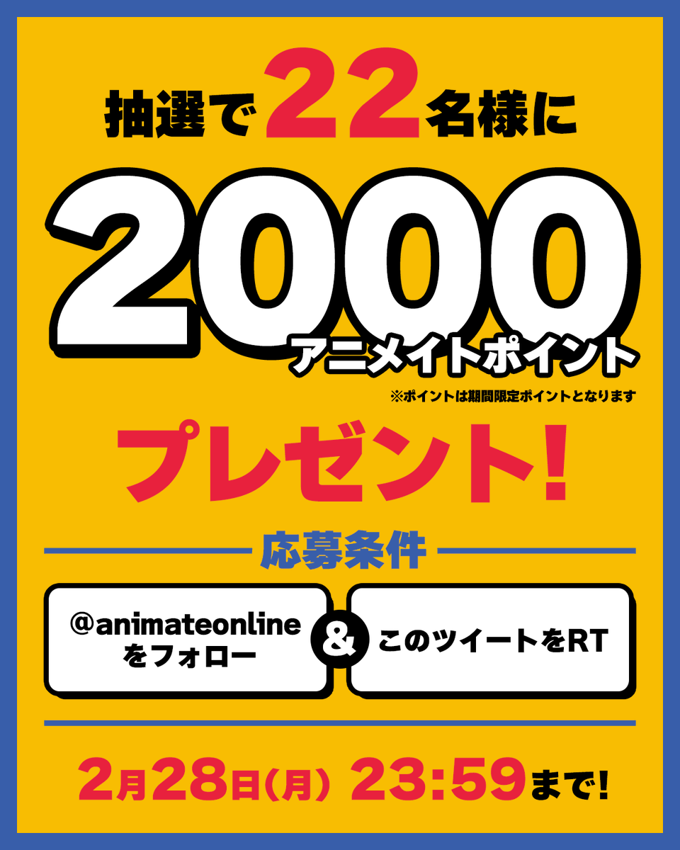 突然ですが2022年2月22日ということで、抽選で22名様に『2,000アニメイトポイント』をプレゼントいたします🐱