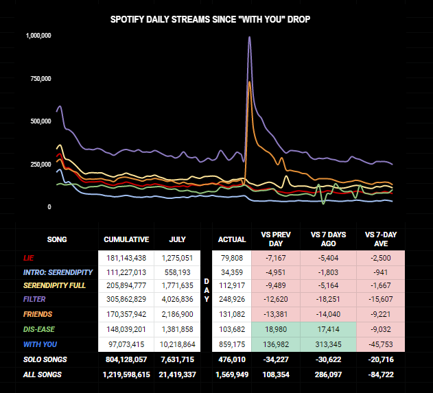 #WithYou earns 859,175 streams on Day 83 - a 136K increase in streams vs previous day.