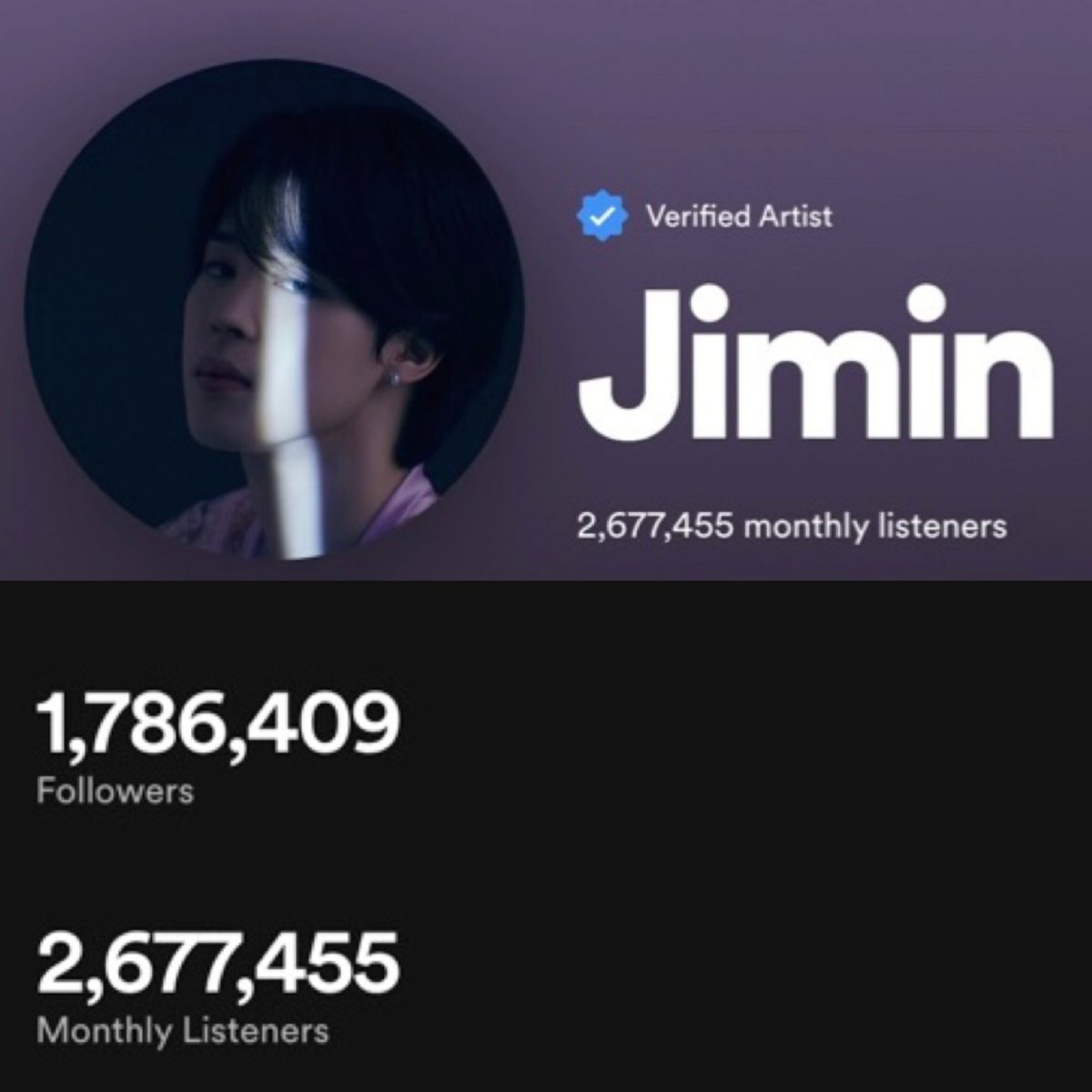Jimin’s Spotify profile now has 1,786,409 followers as it gained 7,363 followers the past 24 hours.